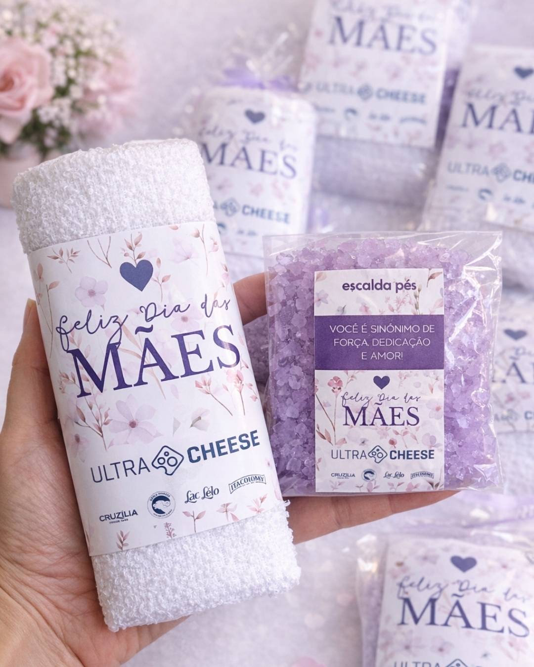 Inclui embalagem plástica com laço de cetim